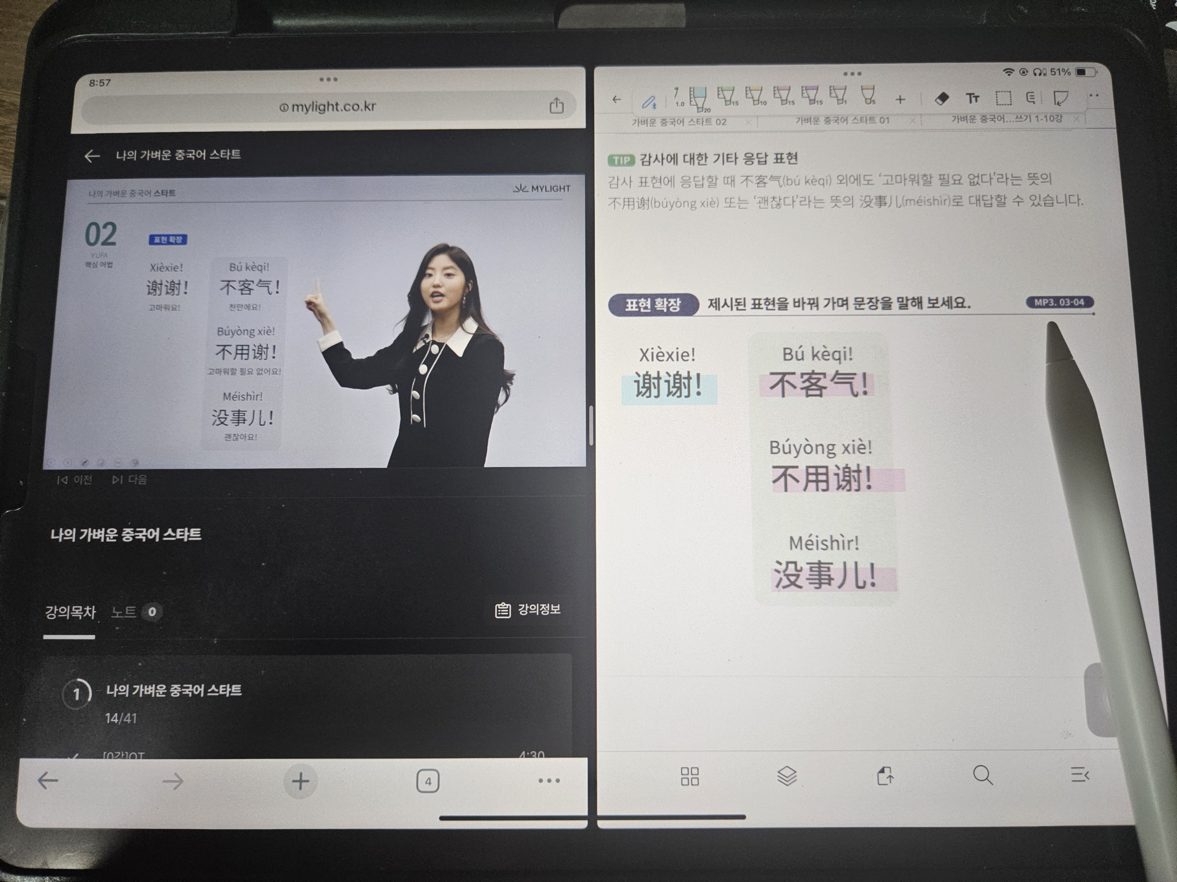 가벼운학습지 중국어 7주차 두번째 기록은 중국어 감사 표현과 그 대답으로 괜찮다 의미 표현이다.