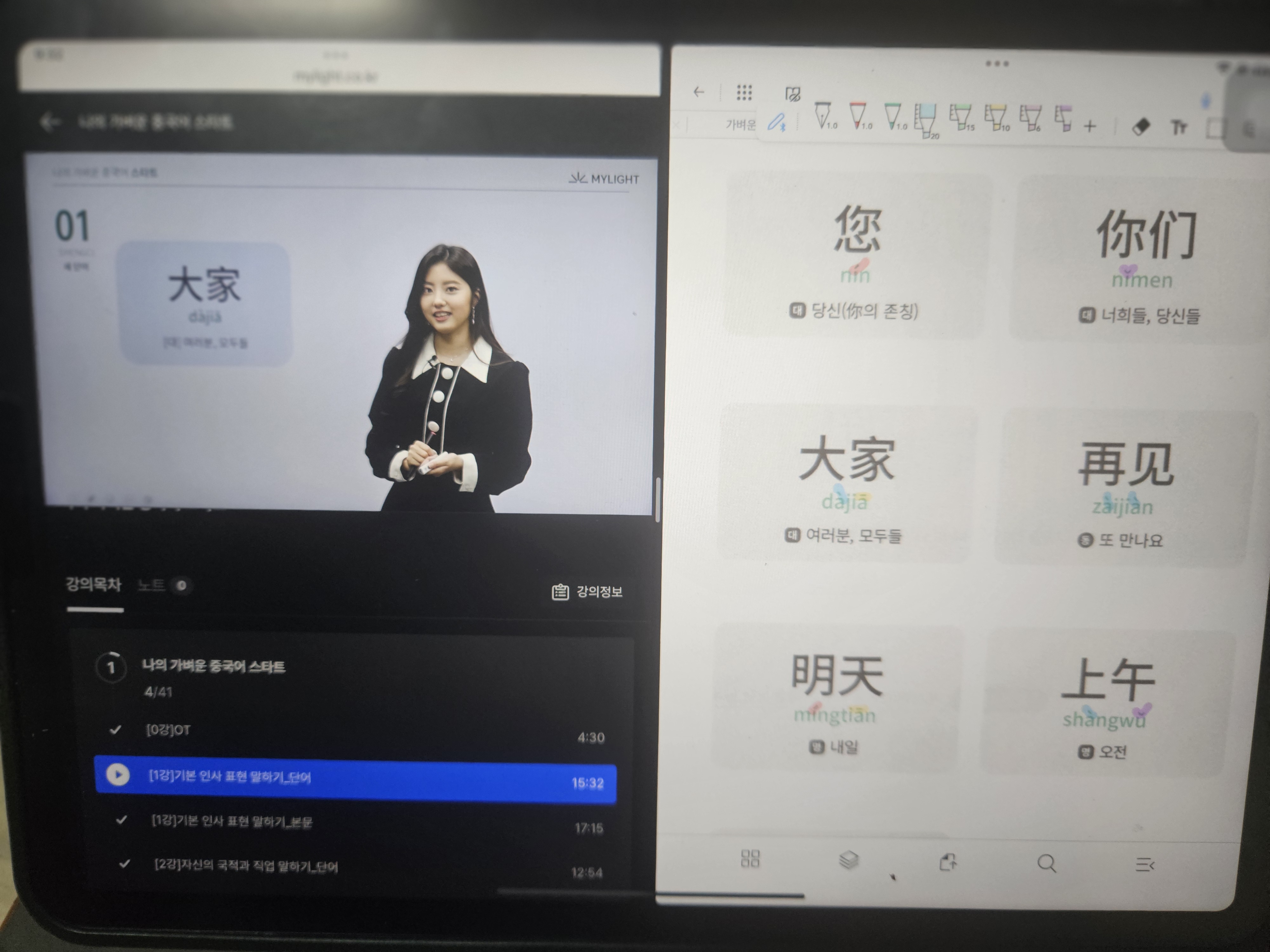 그래도 반복해서 하다보면 회화라도 들리겠지 싶어서 강의를 반복해서 듣고, 중국어 나오는 영상을 보게 되면 귀를 쫑긋하게 된다.