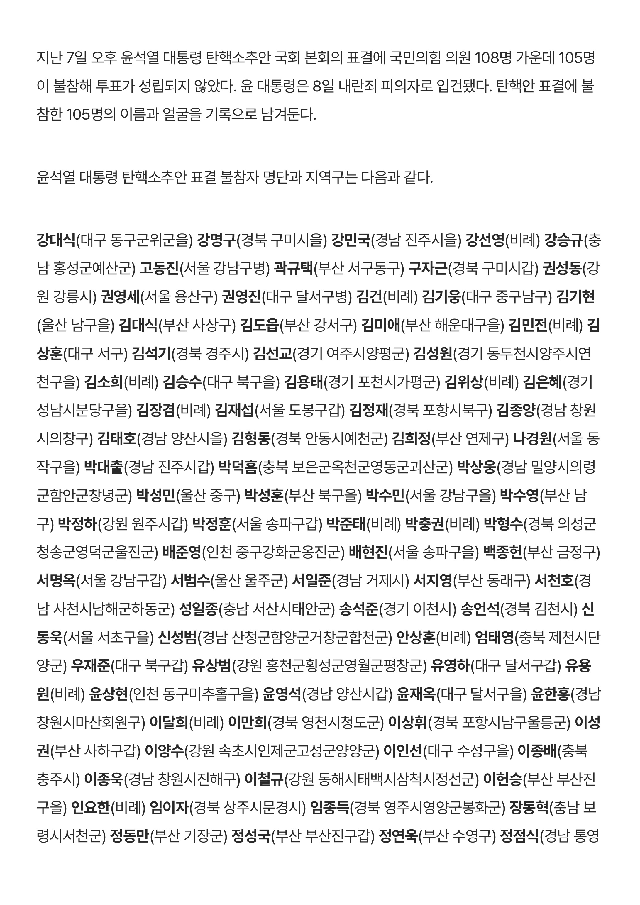 본회의장 떠난 105인, 이름과 얼굴을 기록한다